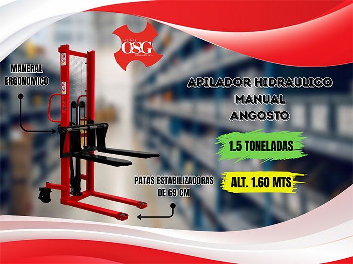 Además de los patines hidráulicos, contamos con apiladores semi eléctricos y eléctricos, ideales para operaciones que requieren levantar cargas a mayor altura con rapidez y menor esfuerzo físico. Estos equipos son perfectos para bodegas y centros logísticos que buscan eficiencia y productividad.